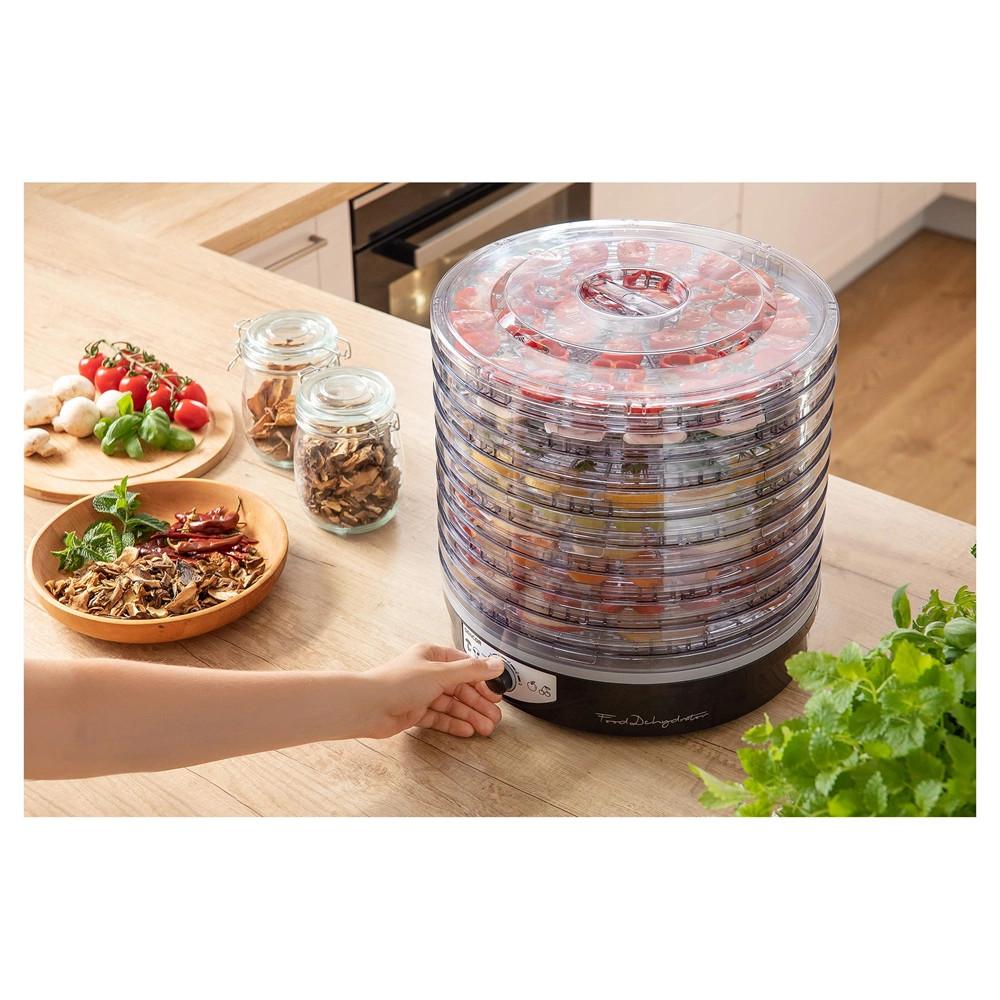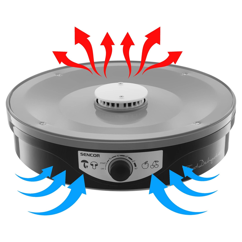 A Sencor SFD 3109BK szárítógép sokféle élelmiszer szárítását teszi lehetővé. A tágas szárítósziták 33 cm átmérőjűek, így nagyobb mennyiségű szárítási alapanyagot tudnak befogadni. A szárítógép házába épített ventilátor egyenletesen oszlatja el a meleg levegőt a szárító minden emeletén. Mindezt a hálók speciális rácsszerkezete teszi lehetővé.