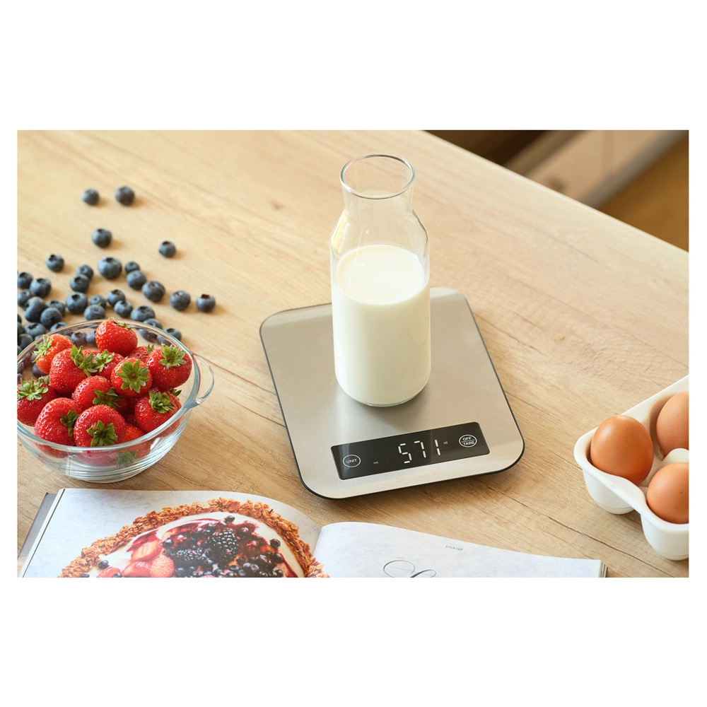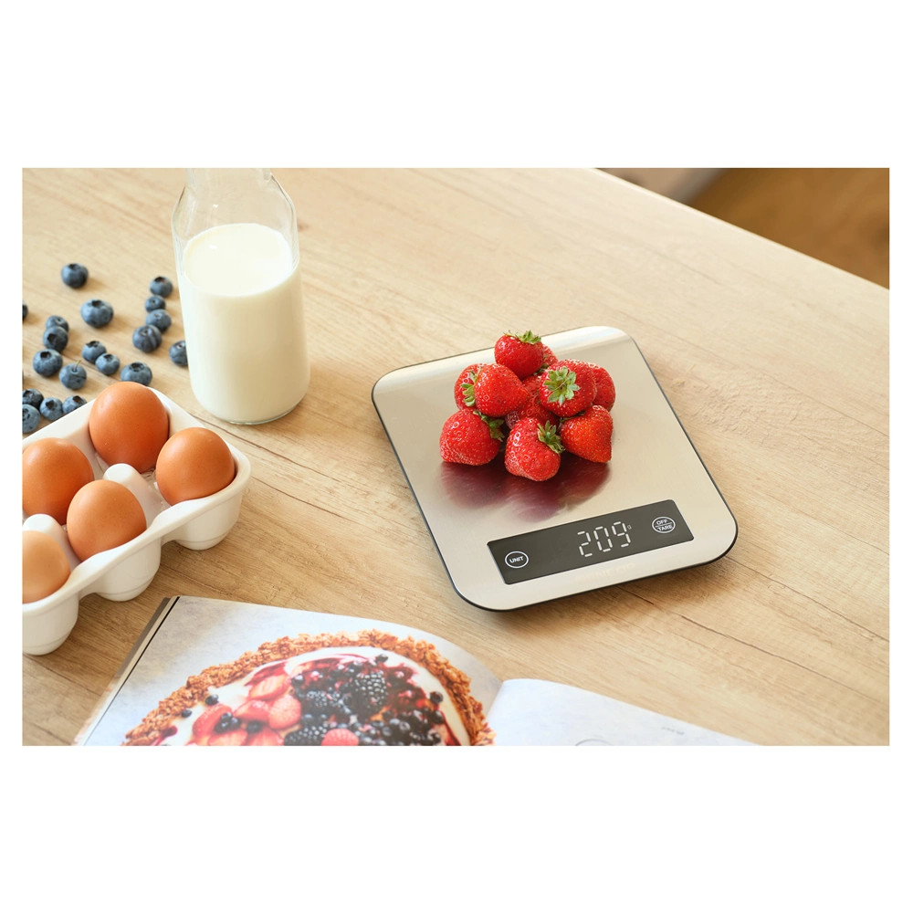 A rozsdamentes kialakításnak köszönhetően a digitális konyhai mérleg takarítása hihetetlenül egyszerű. Nincs szükség mosogatásra, csak egyszerűen egy nedves szivaccsal törölje át és már újra tiszta lesz a készülék.