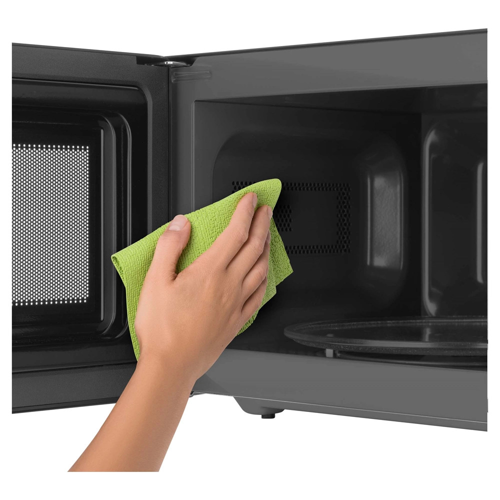 A mikrohullámú sütő kialakításának köszönhetően egyszerűen tisztítható. A fém kivitelű ház és a zománcozott belső felület nedves ruhával tisztítható. A forgó tányért lehetősége van akár mosogatógépen akár folyó víz alatt elmosni.
