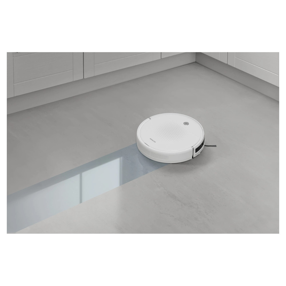 A felmosóval ellátott Sencor SRV 1550WH robotporszívó segítségével nyugodtan és gond nélkül rendet teremthet. A porszívó önállóan mozog, felszívja a szennyeződéseket és egyidejűleg az antisztatikus felmosóval feltörli le a port. A falak mentén és a sarkokban történő tisztításról két oldalkefe gondoskodik. Az egyszerű vezérlést a távirányító vagy a porszívó gombja biztosítja. A szupervékony, mindössze 7 cm magas testnek köszönhetően a porszívó képes mozogni a bútorok alatt és az akadályok között. A SENCOR Smart Room technológia biztosítja a hatékony mozgást, és választhat például egy 30 perces programot kisebb terek vagy külön helyiség takarítására. A kiváló minőségű Li-Ion akkumulátornak köszönhetően a porszívó egyetlen feltöltéssel akár 60 percig is működik, és tisztítás után visszatér a töltőállomásra.