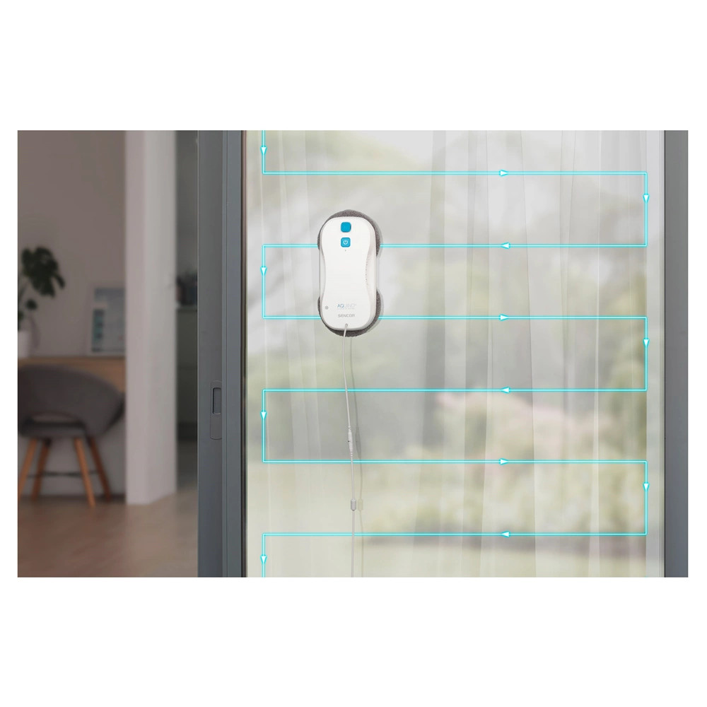 Élvezd a tökéletesen tiszta ablakokat minden nap könnyedén a Sencor SRW 6010WH Aquino robottisztítóval, amely minden munkát elvégez helyetted. A robot 3000 Pa erősségű vákuummal biztonságosan rátapad az ablakra. A precíz ablakmosásról két, cserélhető mikroszövet párnácskával ellátott forgó korong gondoskodik. A beépített víztartályból két ultrahangos fúvóka automatikusan benedvesíti az üveget. Mozgását a Sencor Smart Gyro navigációs rendszer szisztematikus vezérlésének köszönheti, amely érzékeli az ablakkereteket és a keret nélküli felületek szélét. Egyszerűen vezérelhető távirányítóval vagy közvetlenül a készüléken. Használható tükörre és a háztartásban található minden egyéb üvegfelületre is.