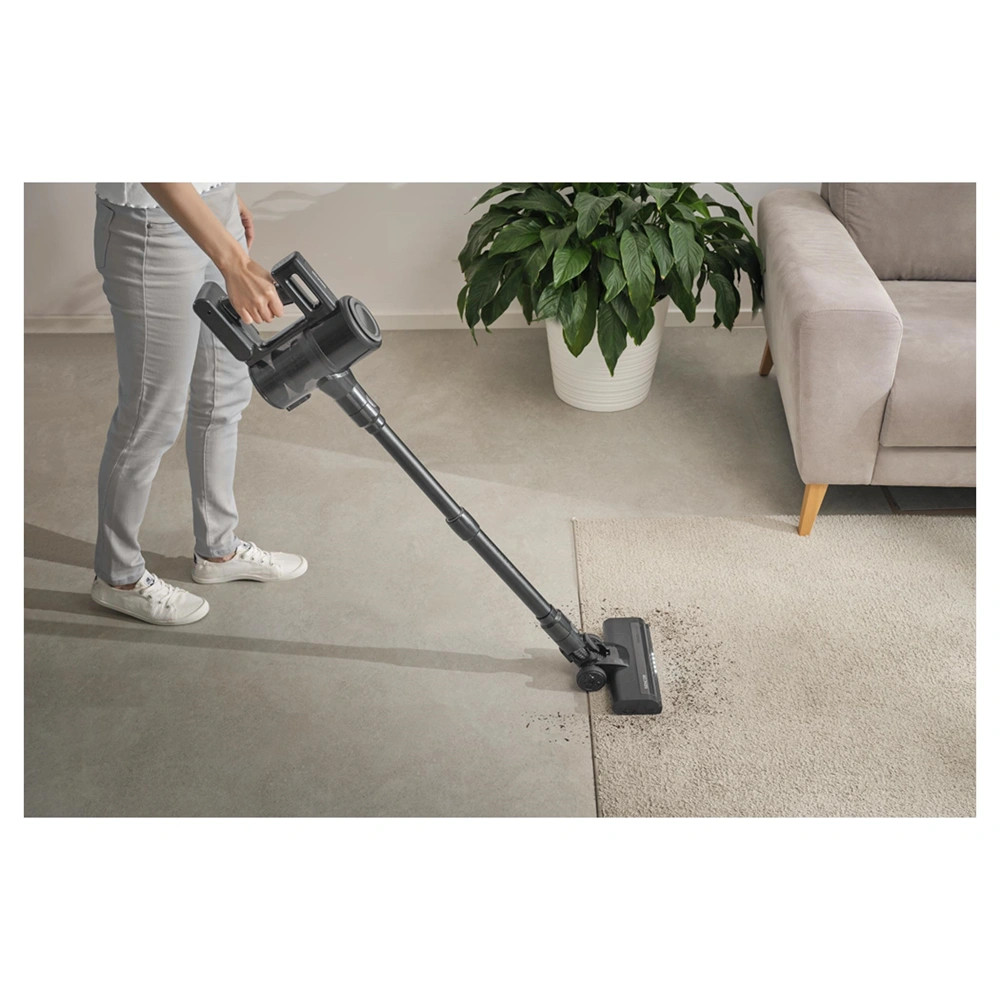Az ultrakönnyű levehető kézi egység görgőkkel van felszerelve, amelyek könnyed mozgást biztosítanak a felületeken. A praktikus kiegészítők lehetővé teszik a por és szennyeződés eltávolítását a bútorokról, kárpitokról, az autó belsejéről és a nehezen elérhető helyekről. A HEPA ciklon szűrőrendszer a legkisebb porrészecskéket is felfogja.