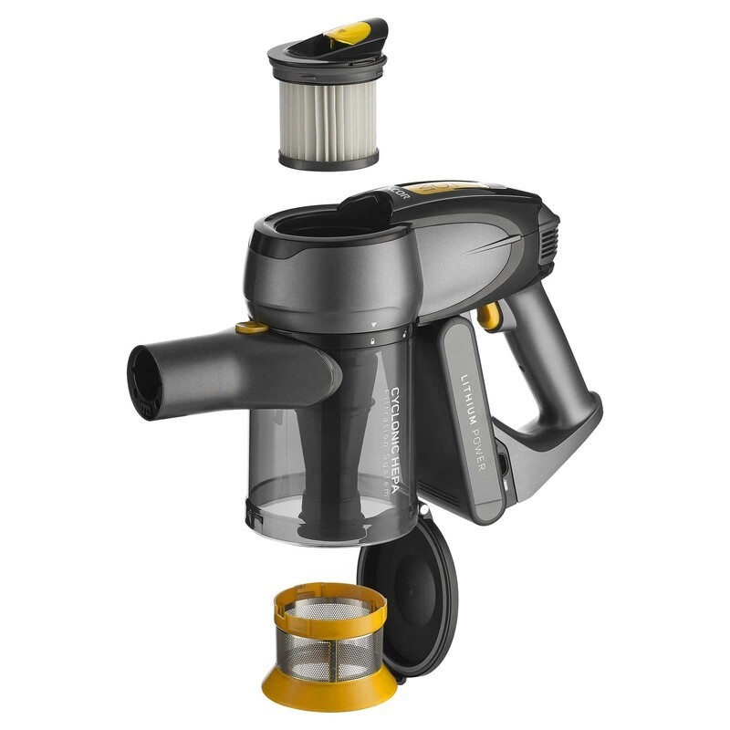 A porszívó működését egy 25,2 V-os, 2500 mAh kapacitású Li-ion akkumulátor biztosítja. Az akkumulátor töltöttségét a beépített LED kapacitás jelző segítségével tudja ellenőrizni. Egy teljesen feltöltött akkumulátorral akár 50 percen keresztül tud porszívózni, ez függ a használattól, és kb. 4-5 óra szükséges az akkumulátor teljesen feltöltéséhez.