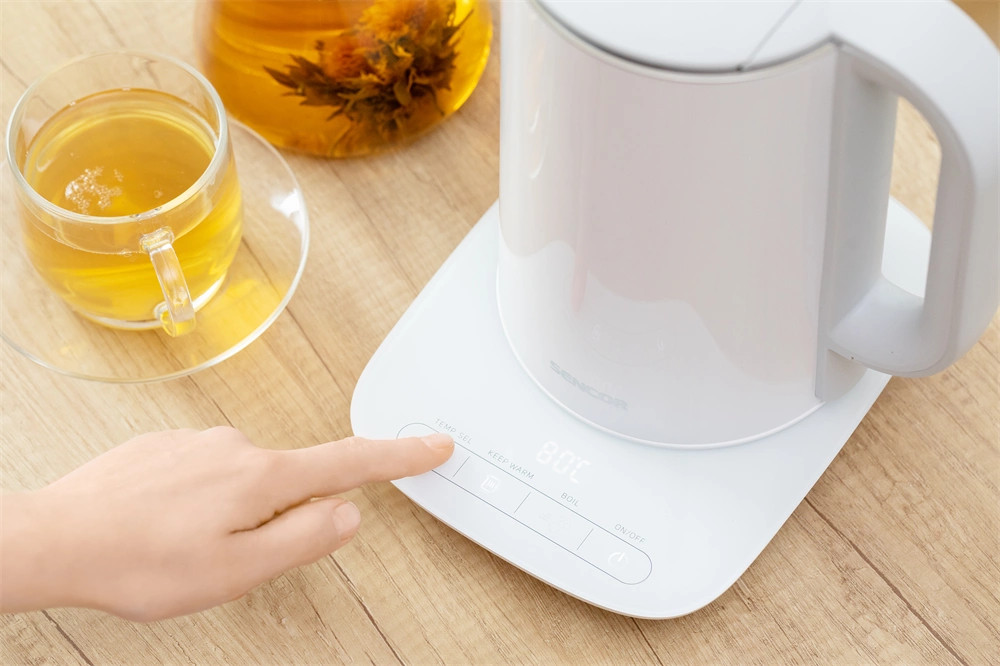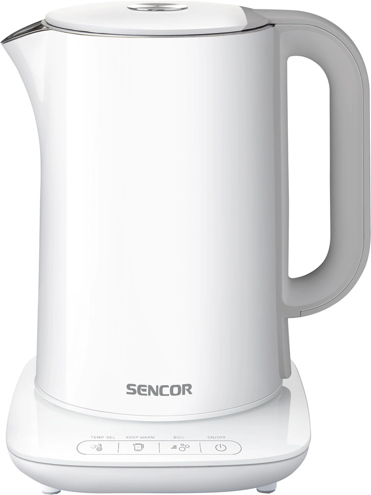 A Sencor SWK 1591WH egy nagy teljesítményű nemesacélból készült elektromos vízforraló 2150 watt maximális teljesítménnyel, mellyel időt és energiát takaríthat meg. Akár 1,5 liter vizet is képes egyszerre felforralni, így 3 -5 fős háztartásokba megfelelő választás. A készülék használatát ergonomikusan kialakított fogantyú teszi kényelmesebbé. A beépített szűrő könnyen és egyszerűen eltávolítható, tisztítható. A vízforraló háromszoros biztonsági rendszerrel és hőmérséklet állítási funkcióval lett felszerelve. A 360°-ban elforduló talpnak köszönhetően a tápkábel sem zavarja a munkában. A letisztult designnak köszönhetően minden konyha ékessége lesz.