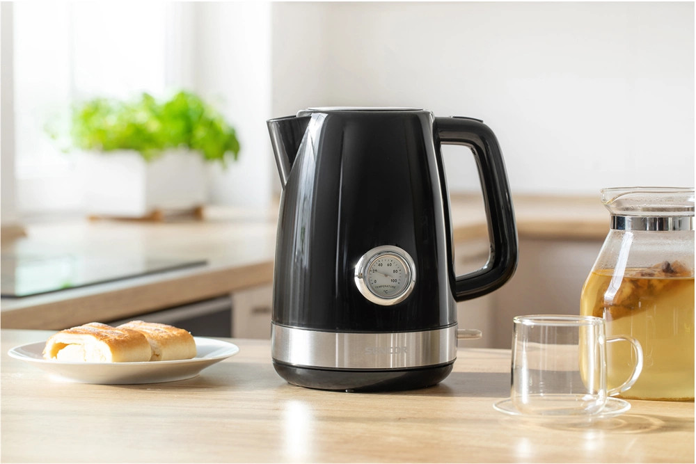 A Sencor SWK 1798BK egy nagy teljesítményű nemesacélból készült elektromos vízforraló 2150 watt maximális teljesítménnyel, mellyel időt és energiát takaríthat meg. Akár 1,7 liter vizet is képes egyszerre felforralni, így 6 vagy több fős háztartásokba megfelelő választás. A készülék használatát ergonomikusan kialakított fogantyú teszi kényelmesebbé. A beépített szűrő könnyen és egyszerűen eltávolítható, tisztítható. A vízforraló kétszeres biztonsági rendszerrel lett felszerelve. A 360°-ban elforduló talpnak köszönhetően a tápkábel sem zavarja a munkában. A metál designnak köszönhetően minden konyha ékessége lesz.
