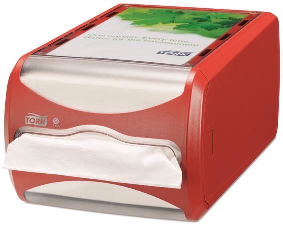TORK Szalvéta adagoló, 145x191x307 mm, asztalra helyezhető, N4 rendszer, Signature line, TORK "Xpressnap", vörös