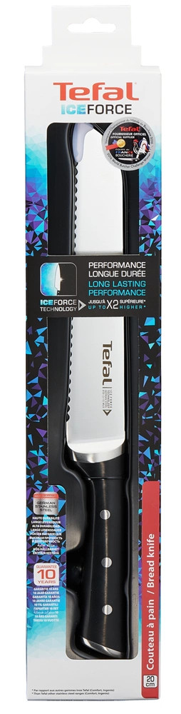 Az Tefal Ice Force nemesacél kenyérvágó kés egy hosszú élettartamú, nagy teljesítményű konyhai kések közé tartozik, amelyek ötvözik a fejlett technológiát és a prémium formatervezést.