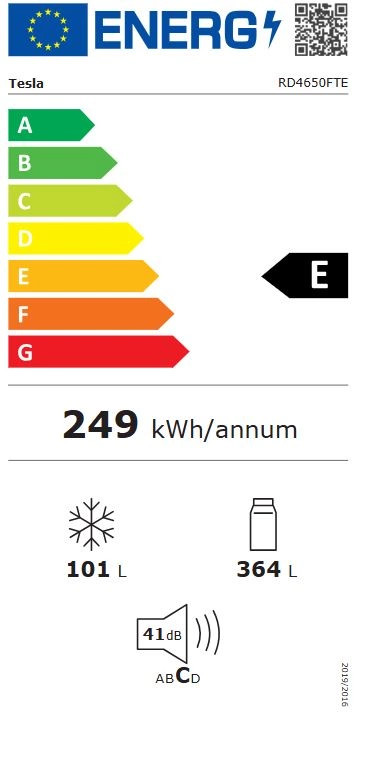Az új energiaosztályozás szerint ez a hűtőszekrény az E osztályba tartozik. Más készülékekkel összehasonlítva így is kevesebb energiát fogyaszt, amivel védi a környezetünket és pénzt takarít meg az alacsonyabb költségek révén. Készülékeink kiváló hőszigeteléssel, továbbfejlesztett ajtóvédelemmel, első osztályú hűtőkörrel és elektronikus vezérléssel vannak felszerelve, amelyek minimálisra csökkentik az energiafogyasztást.