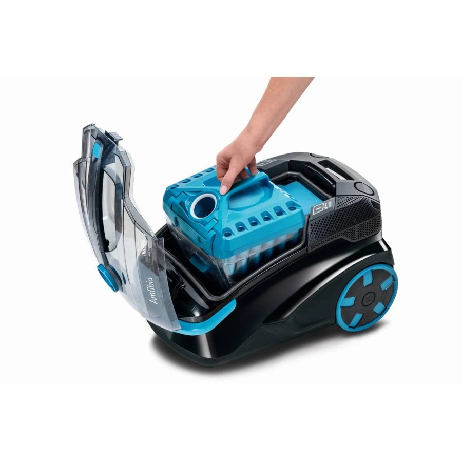 Az első porzsák nélküli, hibrid vízszűrős takarítógép: porszívózás vízszűrővel, ciklon rendszerű portartállyal, szőnyeg- és bútortisztítás, folyadékok felszívása.