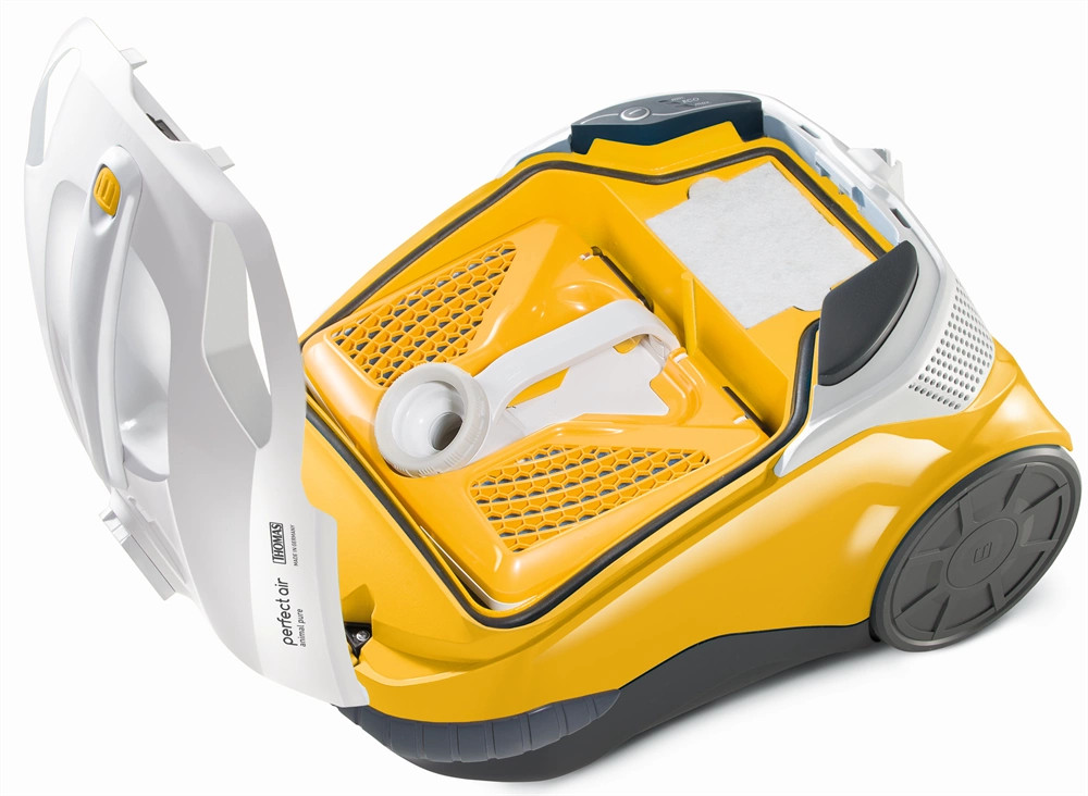 - Egy különleges porszívó azoknak, akik háziállatot tartanak de igényesek az otthon higiéniájára, a levegő frissességére. A Thomas Perfect Air Animal Pure vízszűrős porszívó megtisztítja otthonát az allergiát okozó pollenektől, poratkáktól, háziportól és hatékonyan gyűjti össze az állatszőröket, a szőnyegről vagy a bútorokról. Az Aqua Pure vízszűrő tökéletes tisztaságot és friss levegőt biztosít a lakásban. A szűrő tisztítása könnyű, gyors és higiénikus: egyszerűen öntse a tartály tartalmát a lefolyóba és öblítse ki – nincs visszaszálló por. A porszívózás mellett akár kiömlött folyadékokat is összegyűjthet a vízszűrőbe. Markolatba épített távirányítójával a porszívózás kényelmes és felfrissítő lesz!