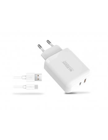 URBAN FACTORY Hálózati töltő, 1xUSB-A (18W), 1xUSB-C (45W), USB-A–USB-C kábel, URBAN FACTORY