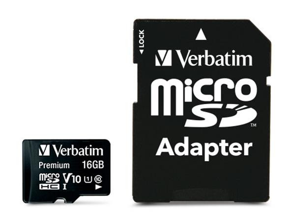 VERBATIM Memóriakártya, microSDHC, 16GB, CL10/U1, 45/10 MB/s, adapter, VERBATIM "Premium"