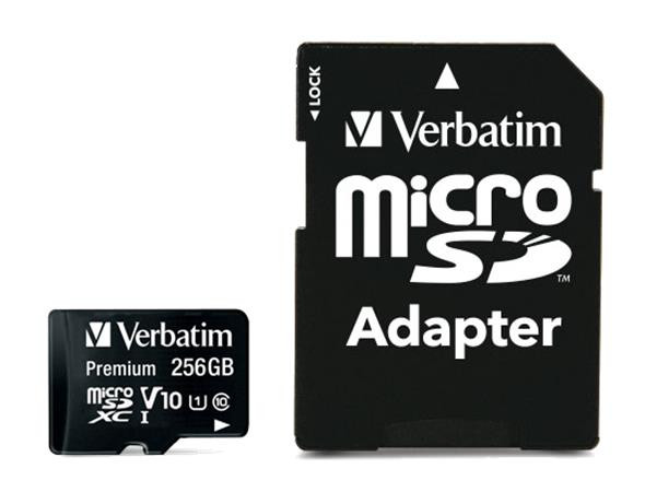 VERBATIM Memóriakártya, microSDXC, 256GB CL10/U1, 90/10 MB/s, adapter, VERBATIM "Premium"