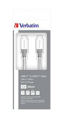 VERBATIM USB kábel, USB-C 3.1 - USB-C, 30 cm, VERBATIM, ezüst