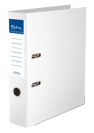 VICTORIA OFFICE Iratrendező, 75 mm, A4, PP/PP, élvédő sínnel, VICTORIA OFFICE, "Premium", fehér