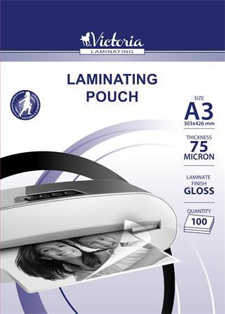 VICTORIA OFFICE Meleglamináló fólia, 75 mikron, A3, fényes, VICTORIA OFFICE