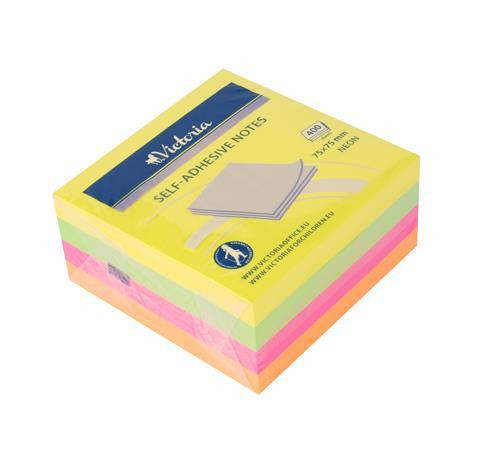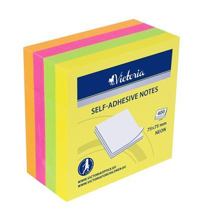 VICTORIA OFFICE Öntapadó jegyzettömb, 75x75 mm, 400 lap, VICTORIA OFFICE, neon