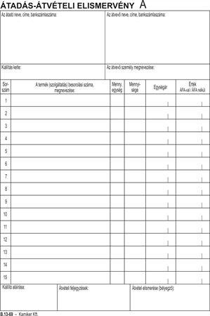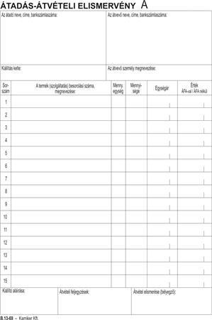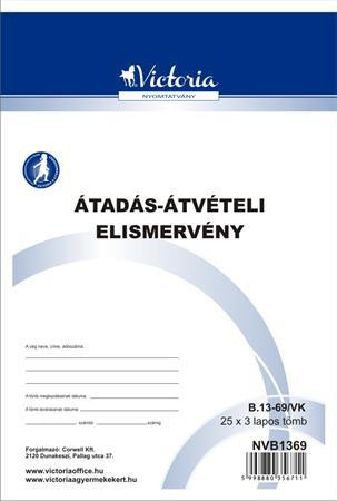 VICTORIA PAPER Nyomtatvány, átadás-átvételi elismervény, 25x3, A5, VICTORIA PAPER "B.13-69", 10 tömb/csomag