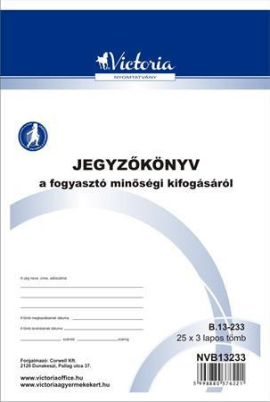 VICTORIA PAPER Nyomtatvány, jegyzőkönyv a fogyasztó minőségi kifogásáról, 25x3, A5, VICTORIA PAPER, "B.13-233", 20 tömb/csomag