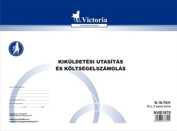 VICTORIA PAPER Nyomtatvány, kiküldetési utasítás és költségelszámolás, 25x2, A4, VICTORIA PAPER "B.18-70", 10 tömb/csomag