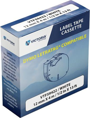 VICTORIA TECHNOLOGY Feliratozógép szalag, 12 mm x 4 m, VICTORIA TECHNOLOGY, fehér