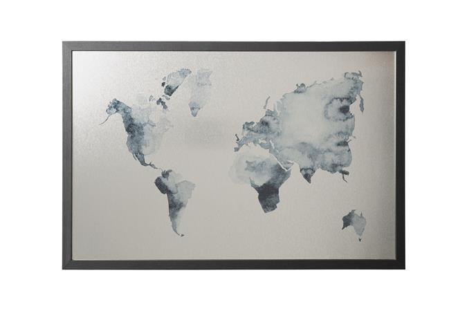 VICTORIA VISUAL Üzenőtábla, ezüst, mágneses, 60x40 cm, fekete fa keret, VICTORIA VISUAL, "Világtérkép"