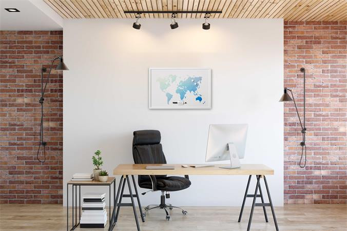 VICTORIA VISUAL Üzenőtábla, mágneses, 60x40 cm, fehér fa keret, VICTORIA VISUAL, "Világtérkép"