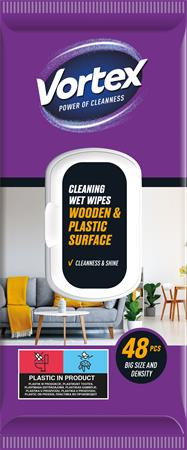 VORTEX Nedves törlőkendő, fa- és műanyag felületre, 48 db, VORTEX