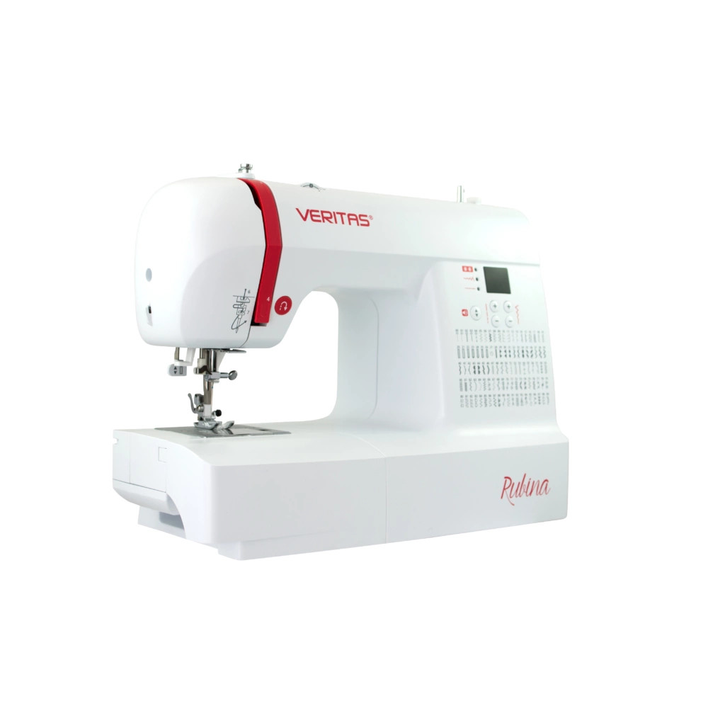 A VERITAS Rubina 7 féle gomblyukvarró programmal rendelkezik, és pillanatok alatt készíti el kívánt hosszúságú és szélességű gomblyukat. Az előre beprogramozható beállításnak köszönhetően még a bonyolultabb feladatok is elvégezhetők vele. A ragyogásmentes LED világítással semmi nem marad rejtve a szemünk elől.
