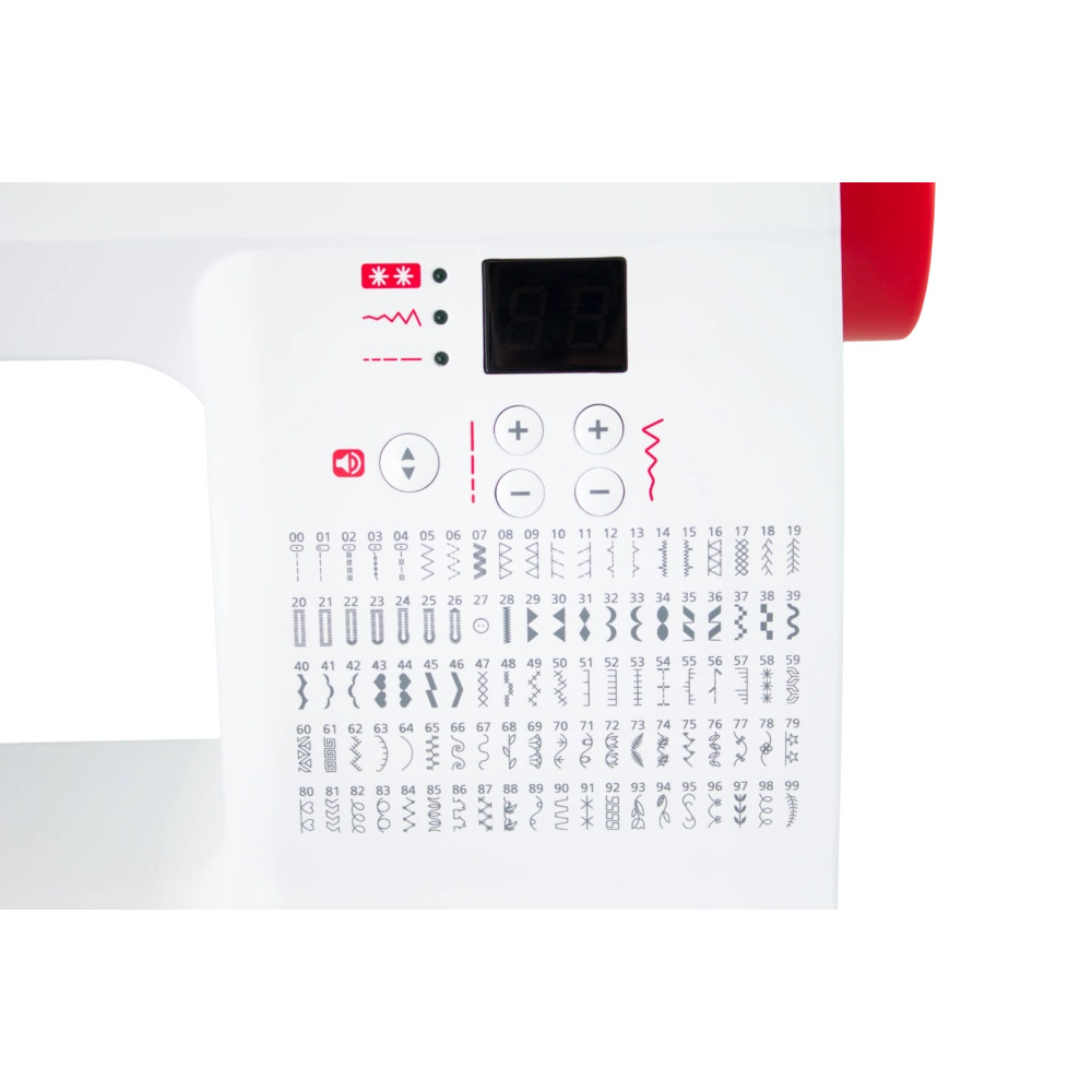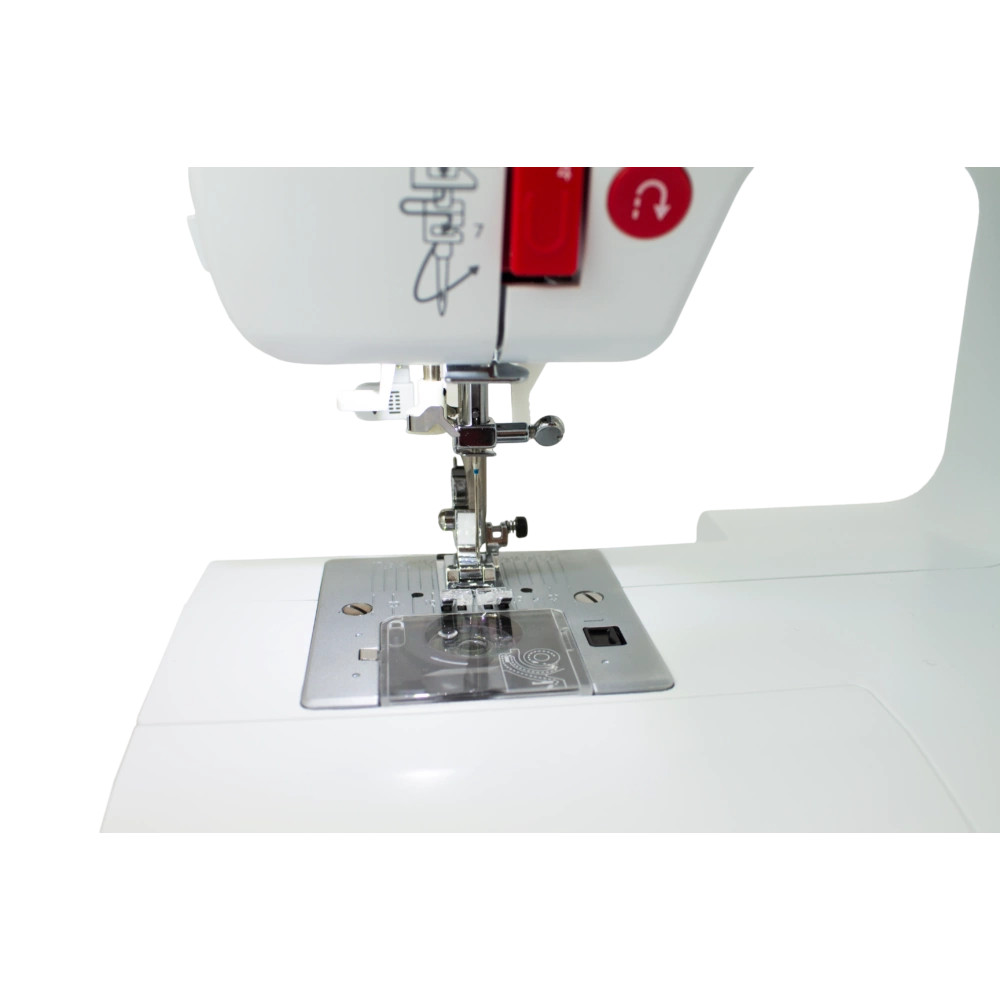 A befűző segéd különösen hasznos, mivel nem kell hosszasan bajlódni a szál befűzésével. A nagy varrófelület, a kivehető tartozék fiókokkal ideális nagy darabok varrására, de akár keskeny ingujjak varrására is. A tartozék fiókban olyan kiegészítőket találunk, mint varrótalpak, vagy plusz orsók.