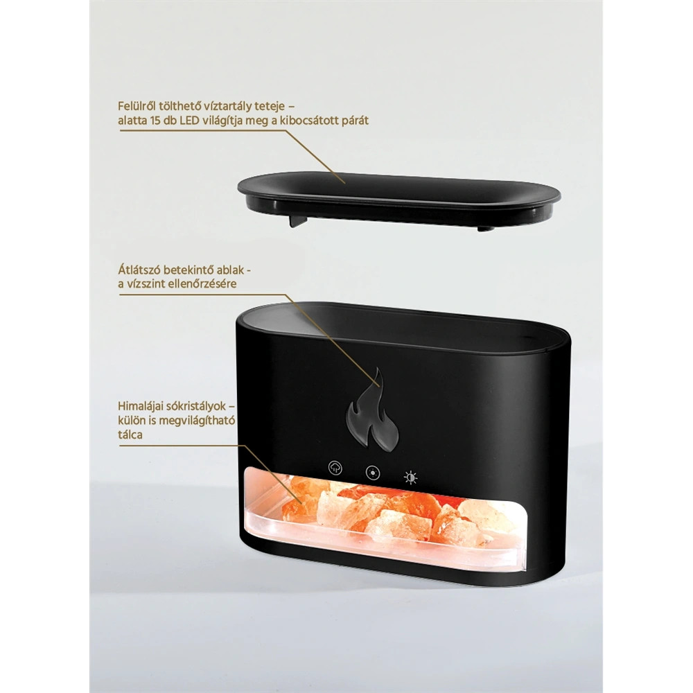 Egyedi láng hatású, innovatív kialakítású diffúzor, különlegesen megvilágított sókristályokkal - a lakás dísze lehet!