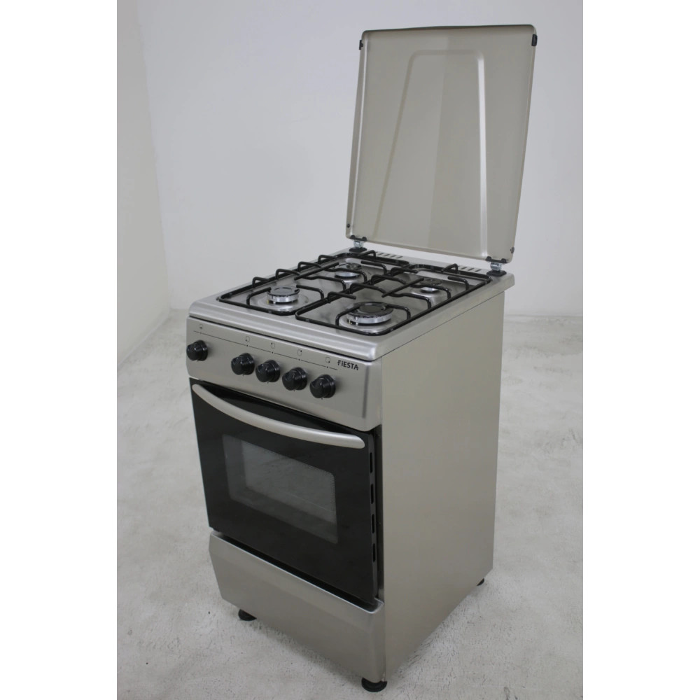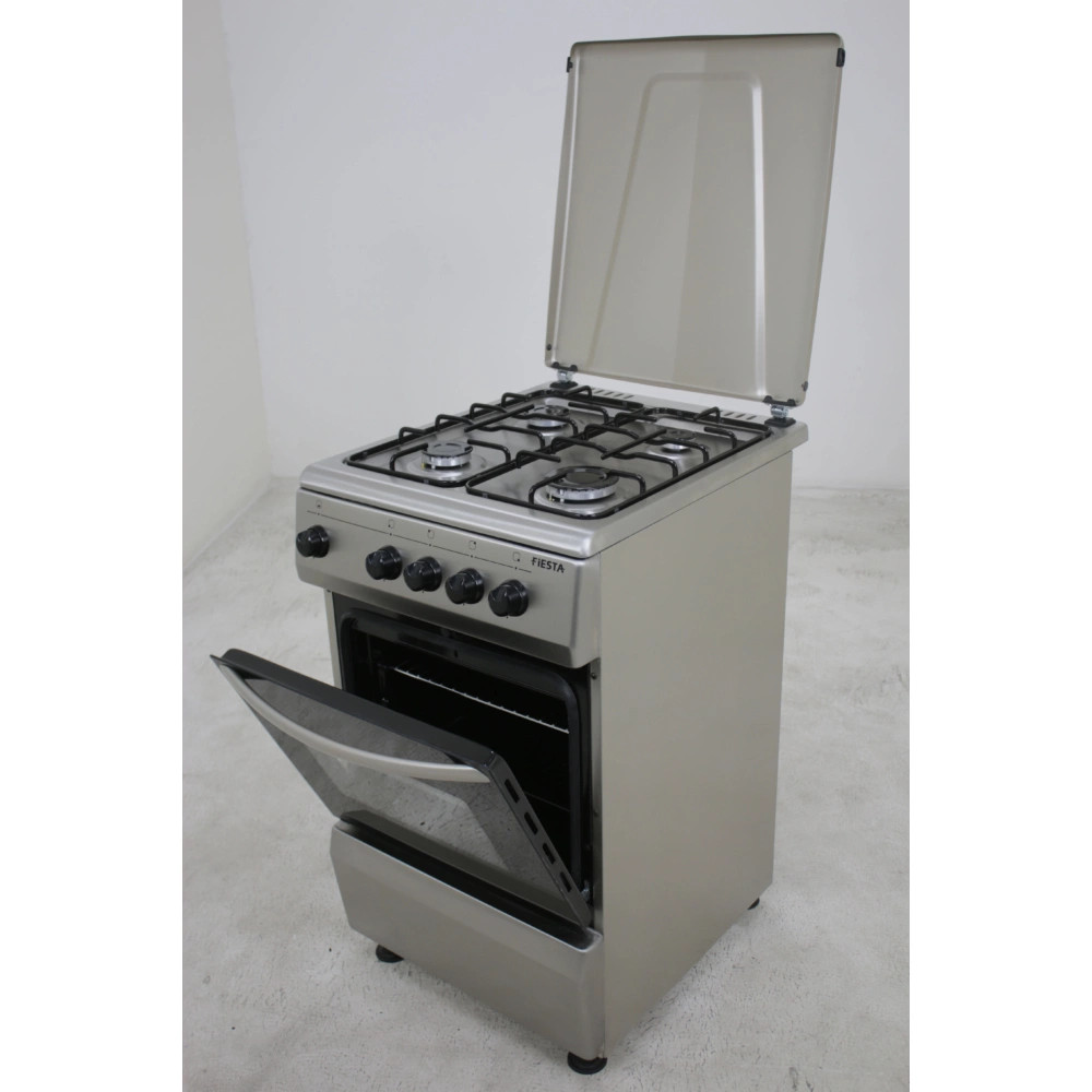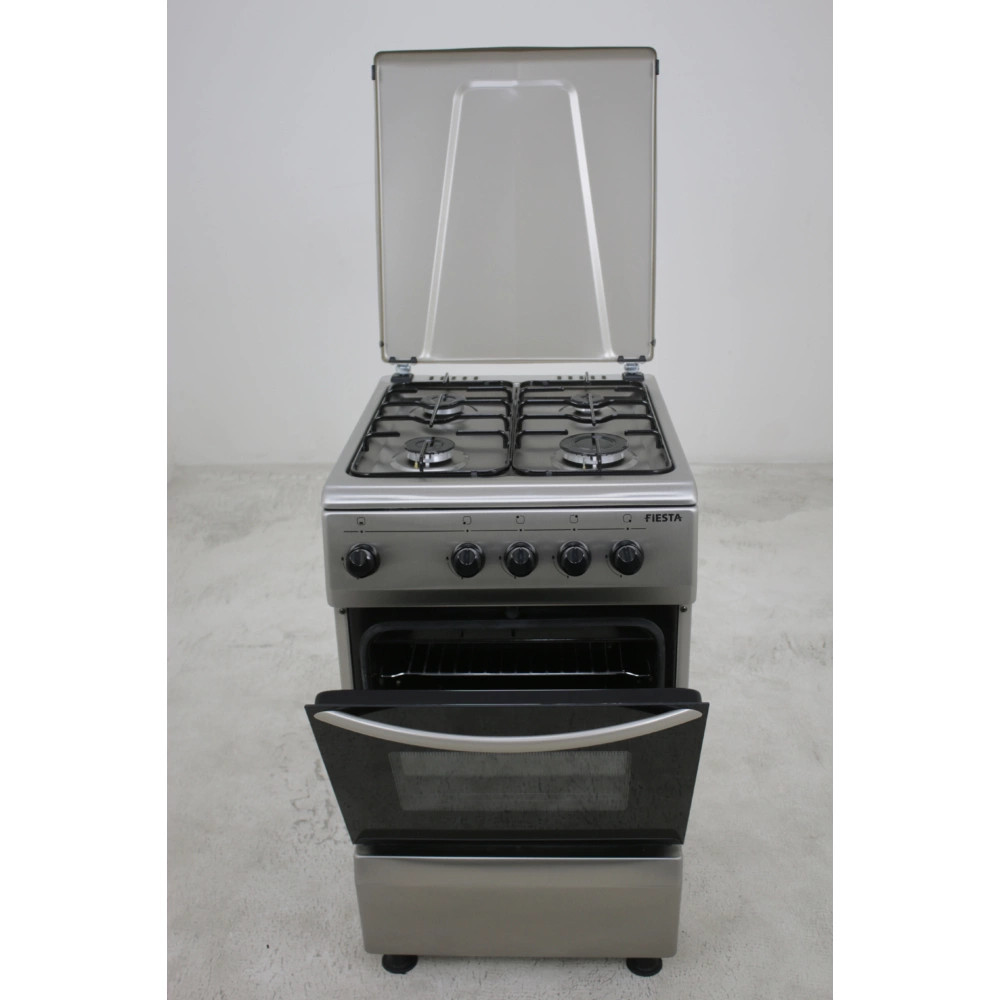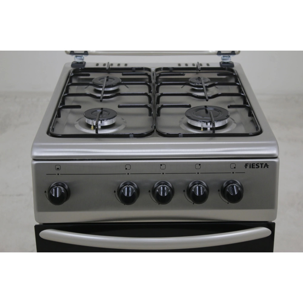 PB palackra előkészített 4 égős, 50x60cm-es gáztűzhely gáz sűtővel és gáz főzőlappal. A Fiesta gáztűzhely megbízható minőségű inox-szürke színű zománcozott termék. Stabil szerkezete, modern formája és kedvező ára miatt népszerű termék. Minden gázégő lángőrrel rendelkezik. Dupla üveg ajtós, + állítható lábak. Sütőtér mérete kb: 50-52 liter.