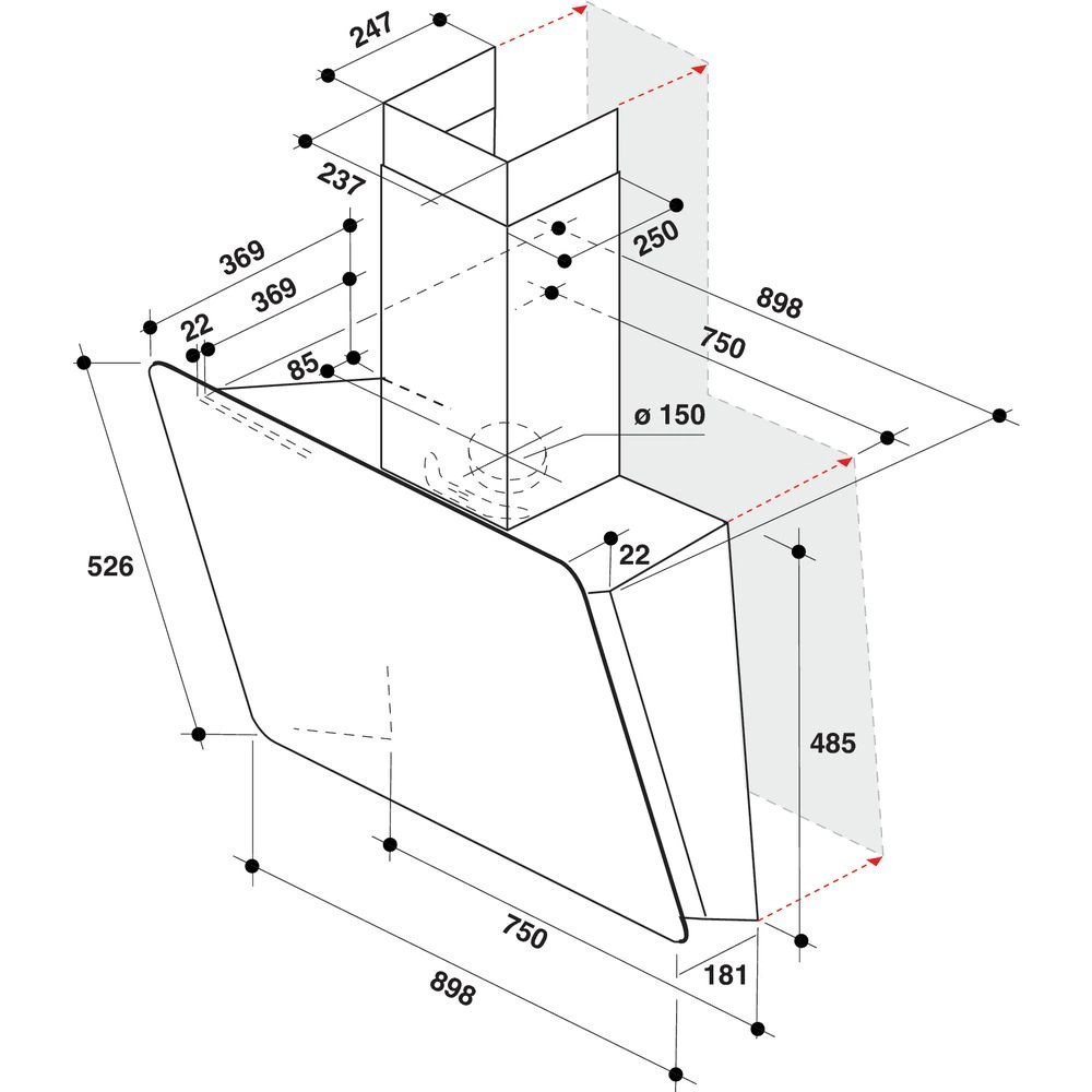Falra szerelhető, ferdesíkú páraelszívó (90 cm)