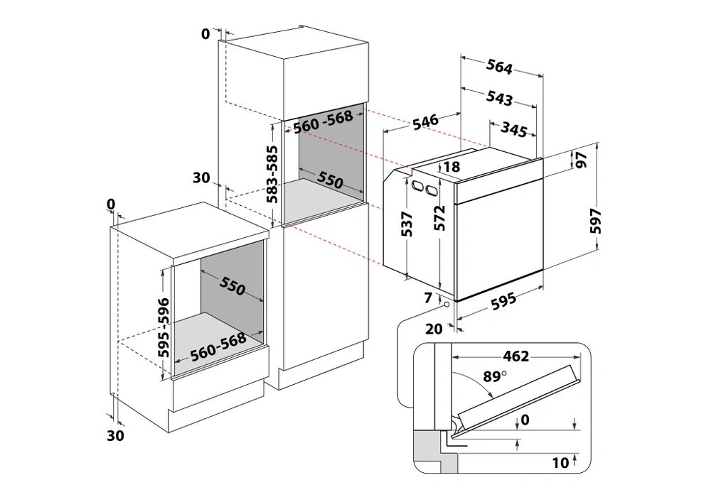 - Készülékméret (Mag.xSzél.xMély.) (mm): 597x595x564