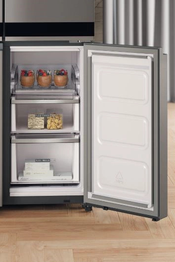 Nincs szükség leolvasztásra. A NoFrost technológia lecsökkenti a fagyasztótér páratartalmát, megakadályozva ezzel a jégképződést.
