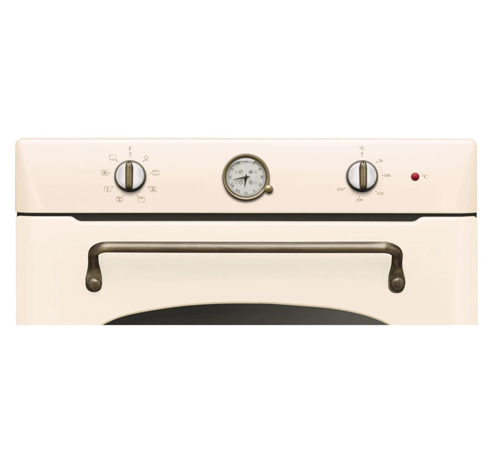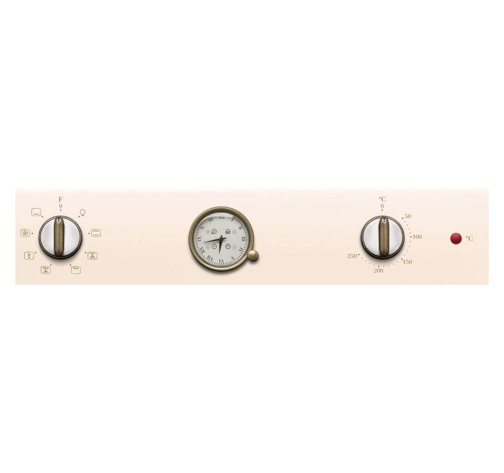 "Old white" fehér beépíthető MF8 sütő, 73 liter, lágy záródású ajtó, katalitikus oldalfalak, teleszkópos sütősín, "A" energiaosztály, 2450W grill, könnyen tisztítható fűtőszállal hőlégbefúvás, 3 rétegű üvegajtó, mechanikus időzítő