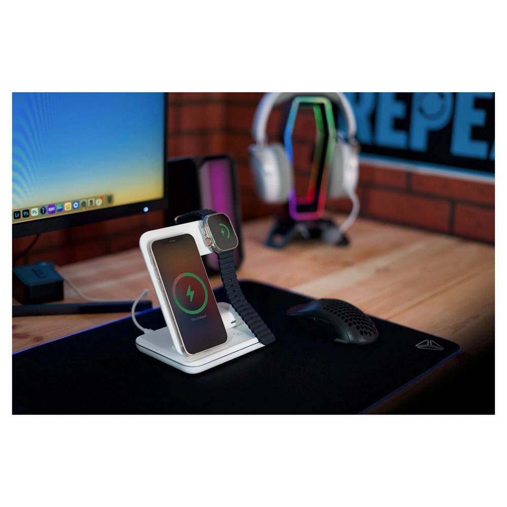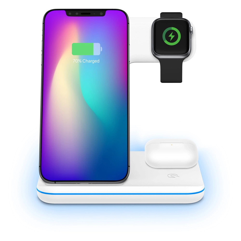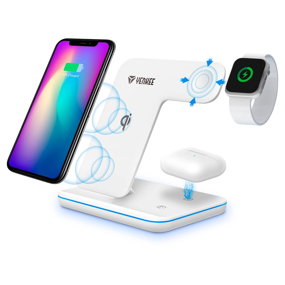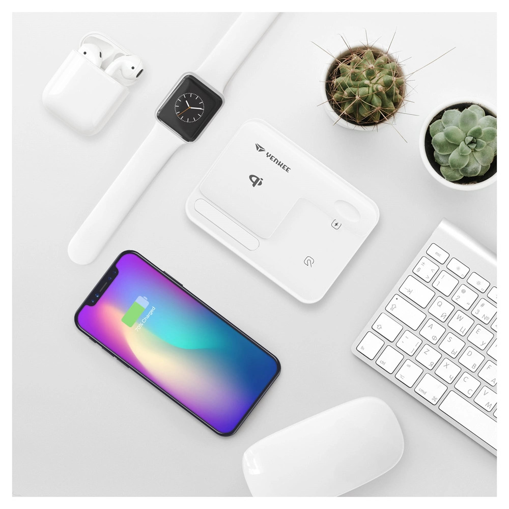A YAC YENKEE 5301 3 az 1-ben vezeték nélküli töltőállomás nemcsak otthona dekoratív eleme lesz, hanem praktikus segítő is, csúnya vezetékek nélkül. Így teljes mértékben tükrözi a kompatibilitás és kényelem mai trendjét. Elég, ha iPhone-ját az alapzatra teszi, és a vezeték nélküli töltés automatikusan elindul függetlenül attól, hogy a mobil vízszintes vagy függőleges helyzetben van-e. Az Apple Watch mágnessel csatlakozik a töltőhöz, és a töltés szintén automatikusan elindul, míg az AirPods fülhallgatót elég a megjelölt helyre tenni, és azonnal elkezdődik a töltése.