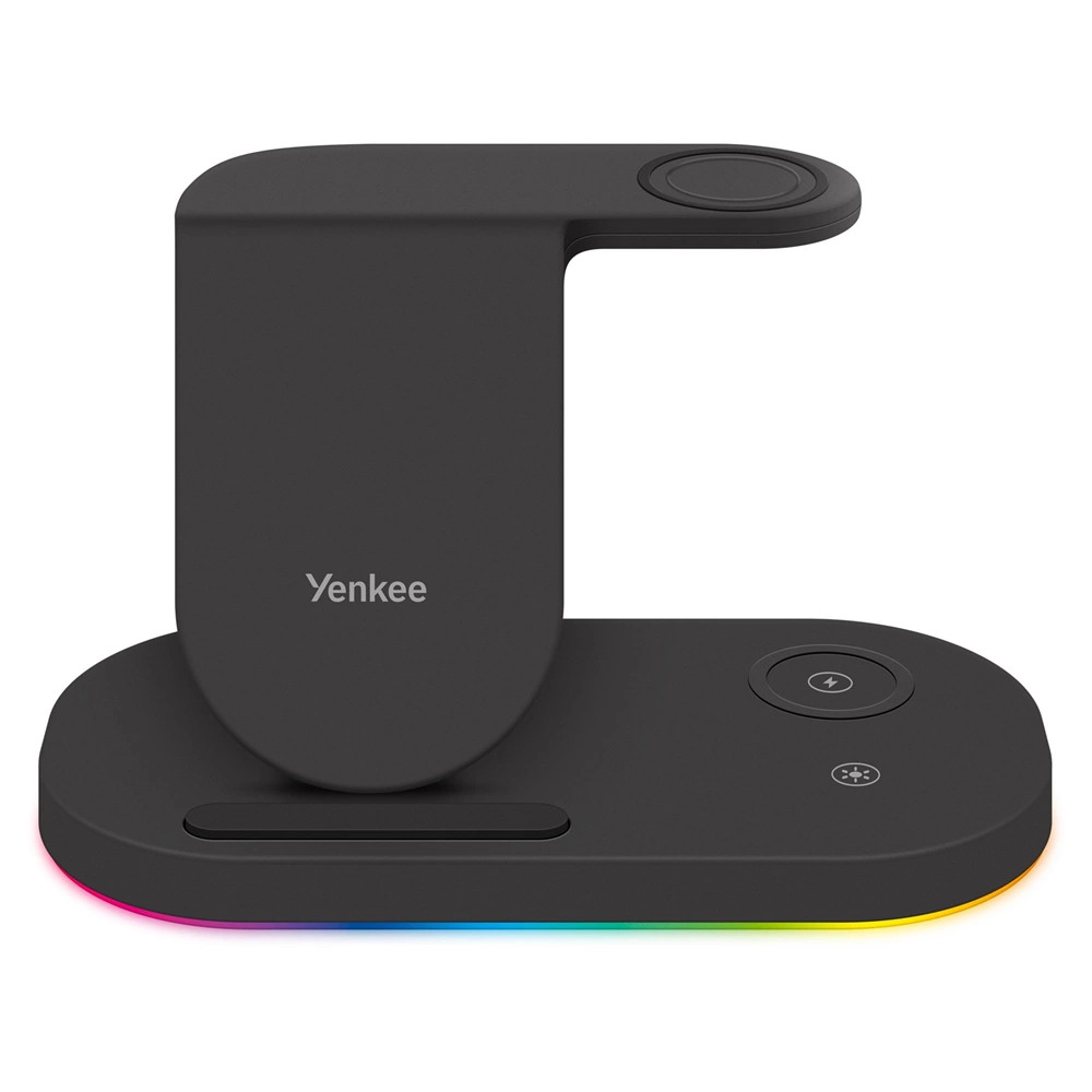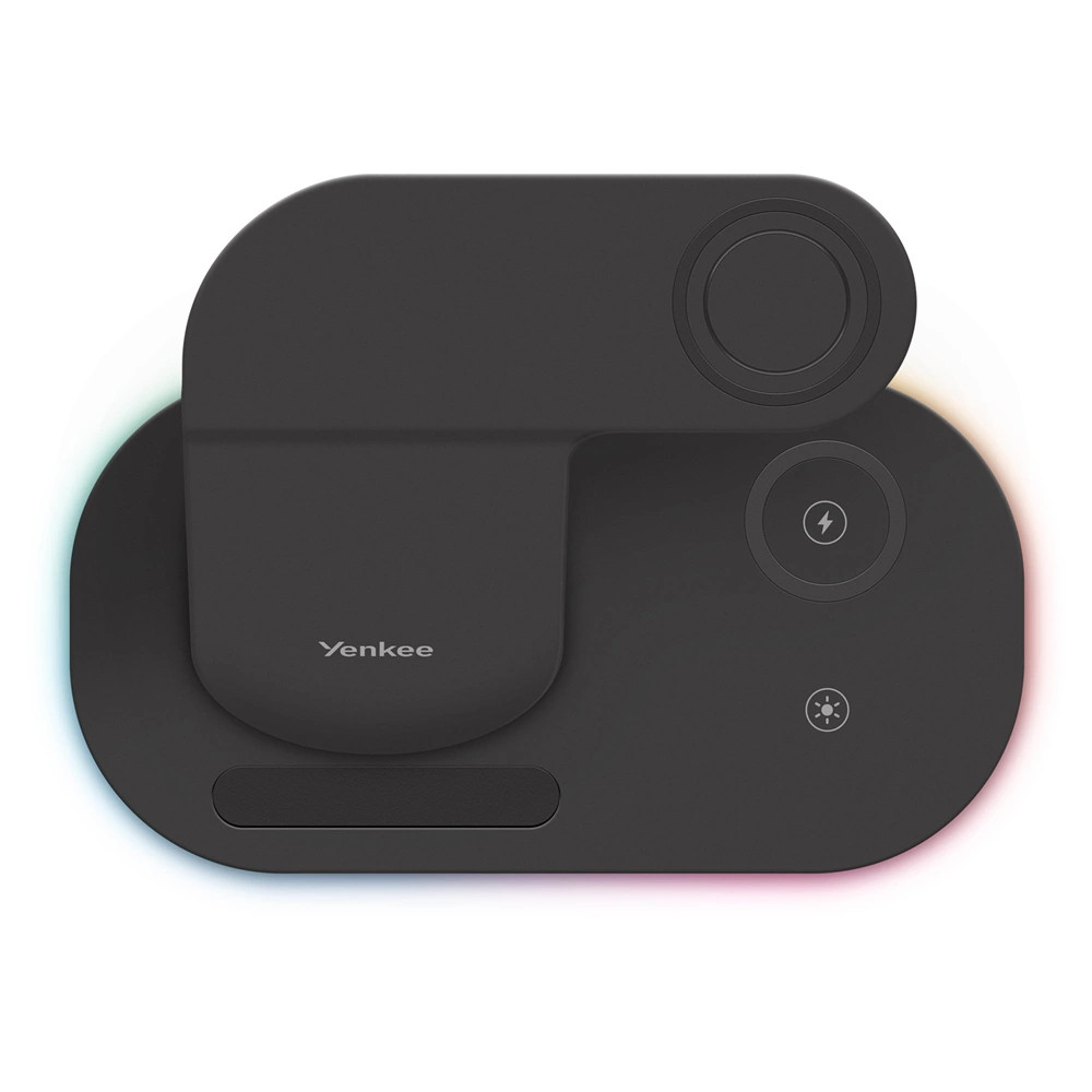 Én egy Yenkee töltőállomás vagyok, és első pillantásra lenyűgöz az állványom szerény, józan kialakítása. Kitehetsz a nappaliba vagy a dolgozószobába, vagy elvihetsz a munkahelyedre, és mindig jól fogok kinézni. Egyszerre tudom vezeték nélkül tölteni a telefont, a fejhallgatót vagy a Samsung okosórát. Automatikusan beindulok, amikor csatlakoztatod a készüléket, és a praktikus mágnesnek köszönhetően az órád nem fog leesni.
