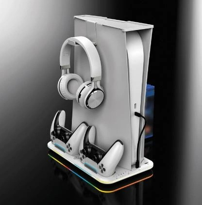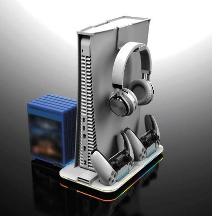 Az állomás része egy fejhallgató akasztó és porvédő fedél a konzol tetejére. Jobb oldalon található egy rekesz akár hat játéklemez tárolására.