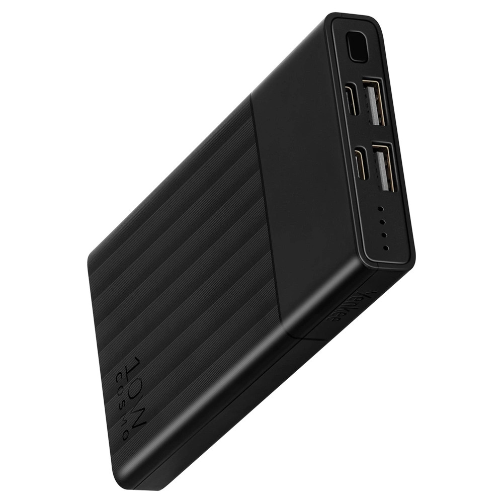 10 000 mAh kapacitású, duális USB-kimenettel ellátott kompakt powerbank, amelynek maximális töltési áramerőssége 2A, okos készülékek töltésére alkalmas.