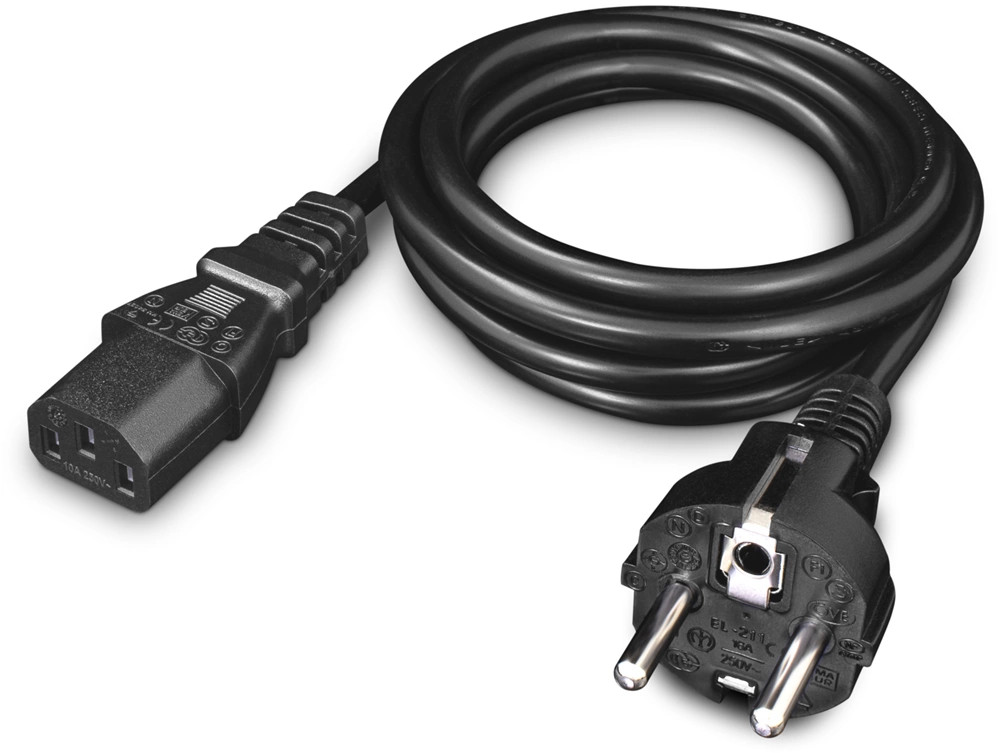 3 eres, 1,5 m hosszú hálózati tápkábel asztali számítógépekhez, monitorokhoz vagy nyomtatókhoz.