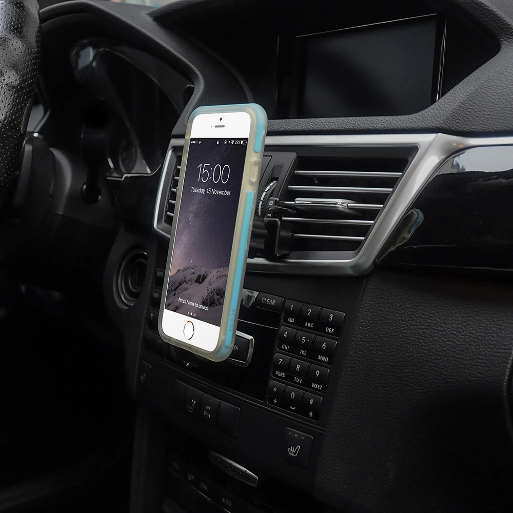 Univerzális szellőzőnyílásba való mágneses telefontartó, ami 360°-ban elforgatható, és a szöge állítható a kijelző lehető legjobb megjelenítése érdekében, ezért tökéletes megoldás az autóba. A tartó úgy van kiképezve, hogy könnyen rögzíthető az autó szellőzőjének rácsához. Annak érdekében, hogy bármilyen vastagságú rácshoz biztonságosan és stabilan lehessen rögzíteni, egy két állású szeleppel beállíthatja a rögzítőerő nyomását. A tartó beépített mágneseket használ készüléke stabil és biztonságos rögzítésére. A mágnesek polaritása úgy van beállítva, hogy ne rontsa a rögzített készülék működését. Elsőosztályú anyagokból készült, hogy megvédje telefonját és a szellőzőnyílásokat a karcolástól és sérüléstől. A megfelelő működéshez szükséges tartozékokat a csomag tartalmazza.