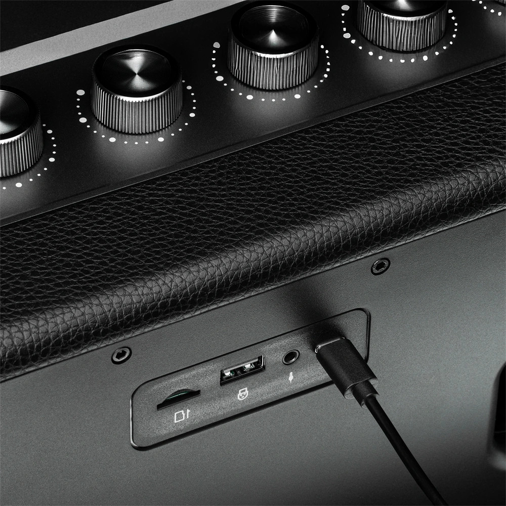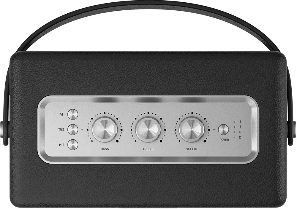 Bár a modern technológia jelen van, az ikonikus megjelenés stílusos retró hangulatot áraszt. Az egyszerű forma kiemeli az elegáns fém elemeket és a hangsúlyos rácsot, így a hangszóró a belső tér dizájnelemévé válik.