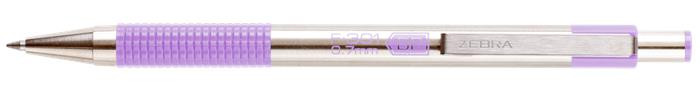 ZEBRA Golyóstoll, 0,24 mm, nyomógombos, rozsdamentes acél, pasztell-lila tolltest, ZEBRA "F-301", kék