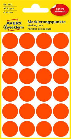 AVERY ZWECKFORM Etikett, 18 mm, kör, AVERY ZWECKFORM, neon piros, 96 etikett/csomag