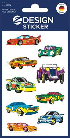 AVERY ZWECKFORM Matrica, papír, 3 ív, 76x120 mm, AVERY ZWECKFORM, "Z-Design No.53882", színes autók