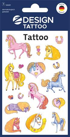 AVERY ZWECKFORM Matrica, tetoválás, 1 ív, 76x120 mm, AVERY ZWECKFORM, "Z-Design No.56681", csillámos lovak
