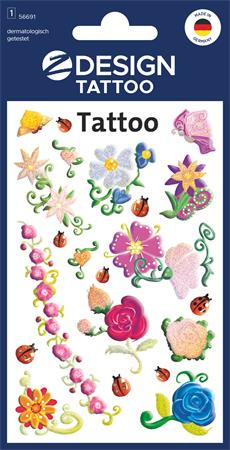 AVERY ZWECKFORM Matrica, tetoválás, 1 ív, 76x120 mm, AVERY ZWECKFORM, "Z-Design No.56691", színes virágok
