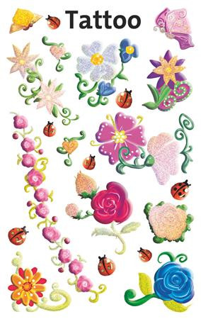 Virág tetoválás csinos kislányoknak. Lepje meg gyermekeit nagyszerű tetoválásokkal, gyermekei imádni fogják a gyönyörű virág tetoválást. Tökéletes ajándék, vagy apró meglepetés, amivel hazaérkezik, születésnapi partikra vagy egyszerűen arra, hogy a gyerekek játszanak.