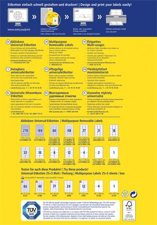 Garancia 0Gyártó AVERY ZWECKFORMVTSZ 48219010Cikkszám cor_AYL4736REV25Tömeg 355,5 g/csom